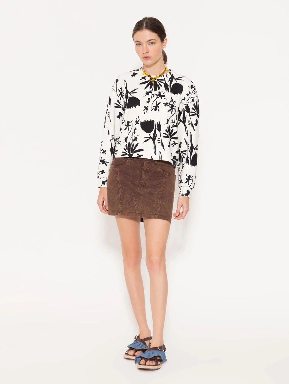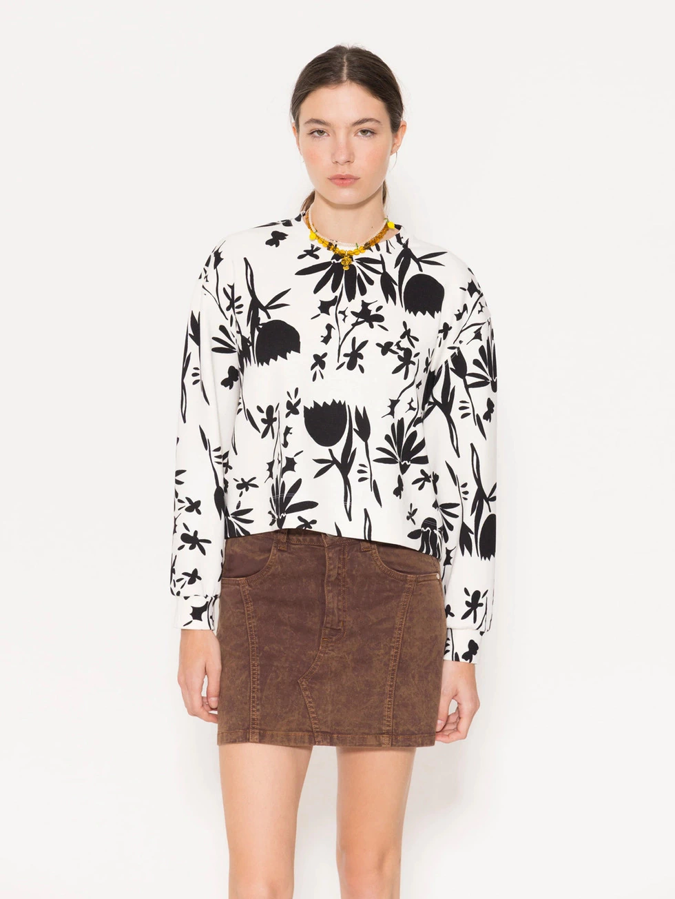 Buzo Cisnes confeccionado en jersey pesado estampado. Presenta escote redondo y detalle de bordado en una de las mangas. Su largo cae por debajo de la cintura, aportando un calce cómodo y moderno.Composición: 94% lyocell, 6% elastano.Referencia modelo Helena: Altura 1,72 Talle: 1Completa el look Mini Holly y Sandalia Tropez