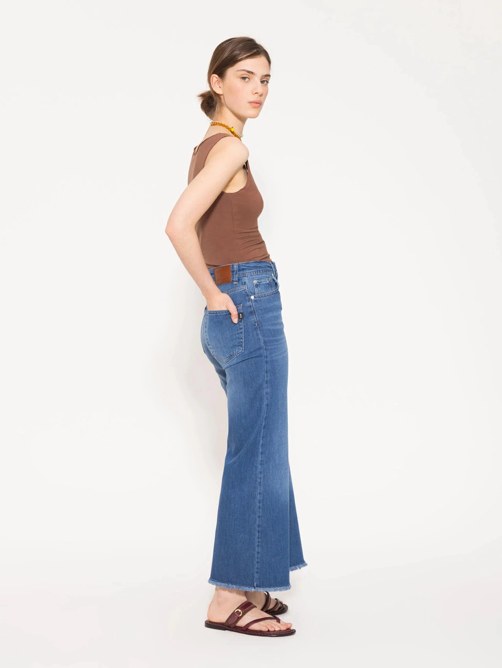 Jeans Kat de calce recto y largo cropped, pensado para que quede por encima del tobillo. Es de tiro medio y confeccionado en denim liviano con elasticidad y caída, lo que permite un buen calce sin perder estructura.Composición: 99,2% algodón, 0,8% elastanoReferencia modelo Lena: Altura 1,75 Talle: 22Completa el look Musculosa Jazzy y Sandalia Rivera