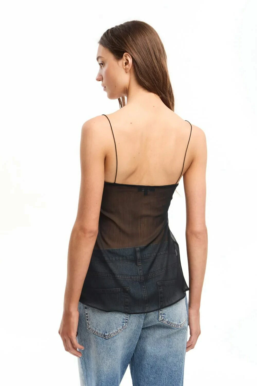 Top lencero con puntilla en busto. Bretel en hombros elástico que se adapta a distintos largos de torso. Cuerpo de gasa con leve transparencia. Pensado para ocasión de uso nocturna. Ideal para combinar con pantalones de cuero.